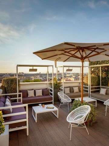 Located on the eighth floor of The Independent hotel is the splendid Terrazza Cielo: with a 360° panoramic view of the capital's wonders, from the Baths of Diocletian to the dome of St. Peter's, Terrazza Cielo offers a unique and rewarding experience that will stay in your memories.